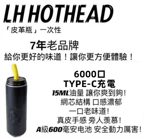 LH HOTHEAD皮革瓶6000口拋棄式電子煙可充電一次性